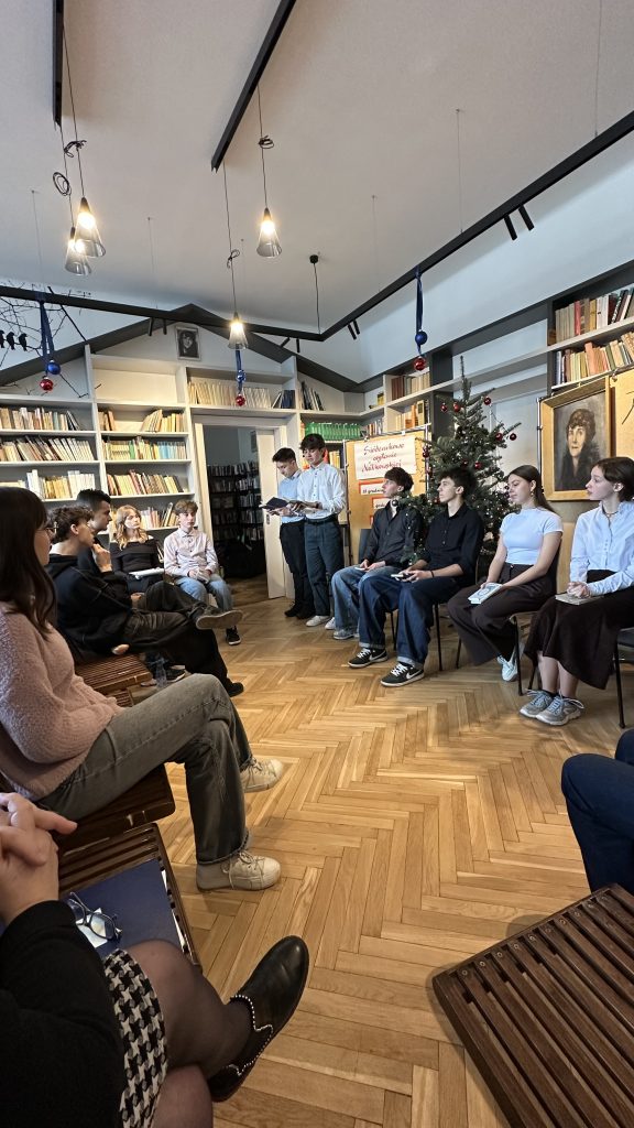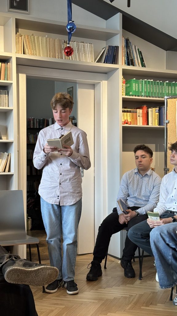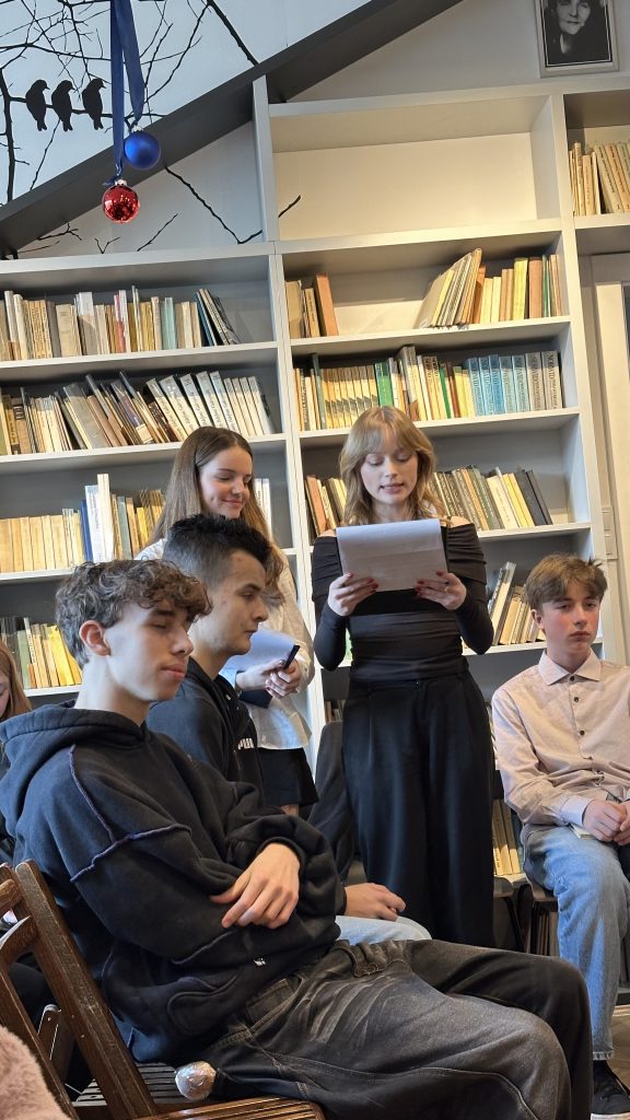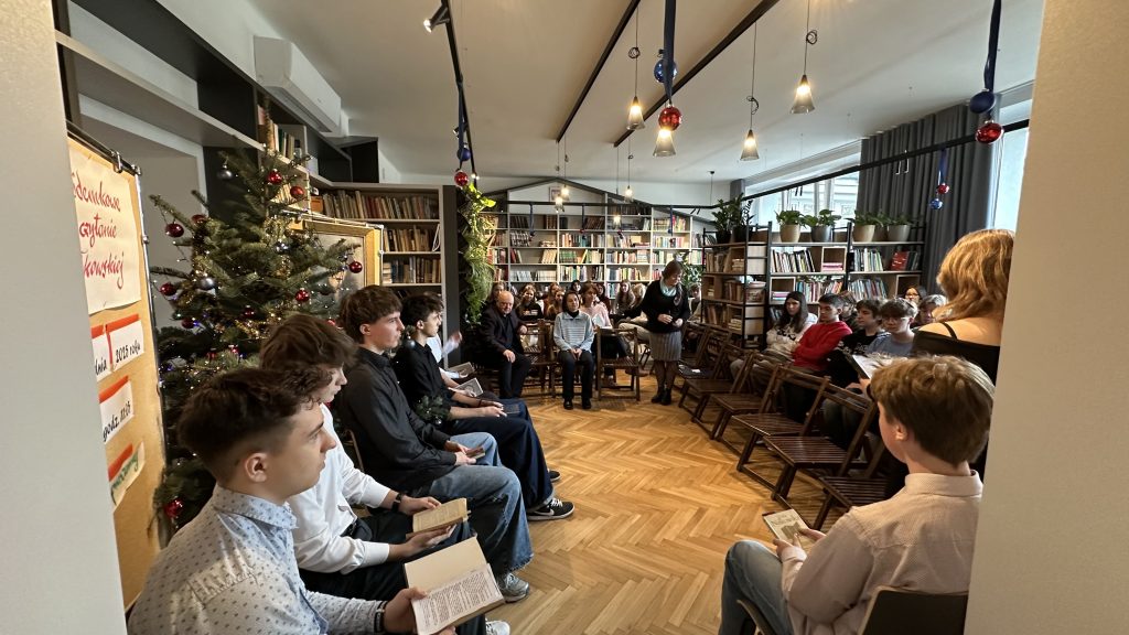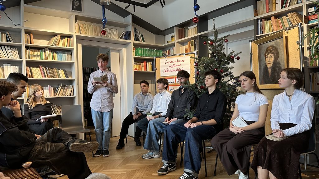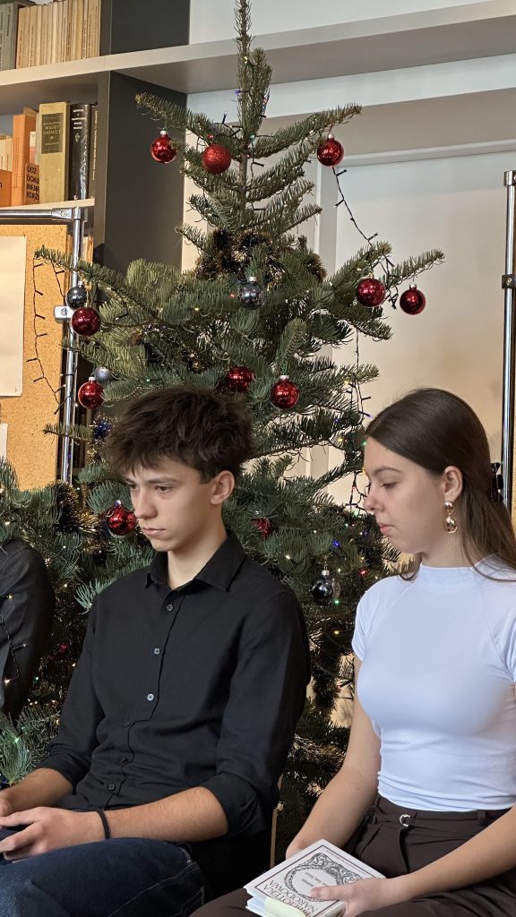 Po wykładzie Pana Ornata uczniowie z klas humanistycznych zaprezentowali wykonane przez siebie prace. Dziewięć zespołów wprowadziło nas w historię i kulturę żydowską, zaprezentowało sylwetki osób lub całych rodzin, które z narażeniem życia pomagały ofiarom Zagłady. Uczniowie z klas trzecich przedstawili także piękne zdjęcia upamiętniające Żydów w Podgórzu.