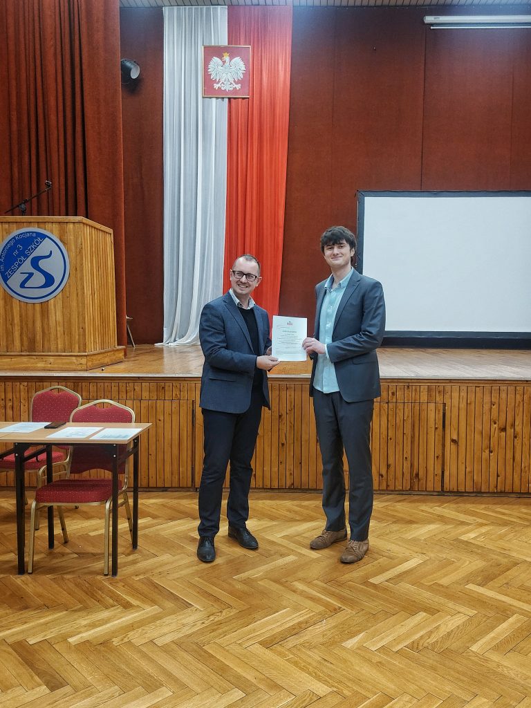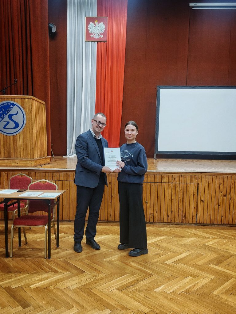 Trzydziestego września 2025 roku zebrani w auli uczniowie mogli poznać efekty pracy nad projektem. Do udziału w tym wydarzeniu zaproszono również znamienitych gości: Pana Wojciecha Ornata oraz Pana Marcina Chorązkiego.