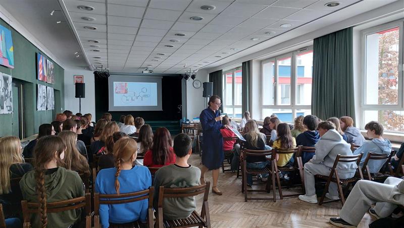 Tydzień Promocji Zdrowia rozpoczęliśmy w piątek, od serii wykładów przeprowadzonych przez specjalnie zaproszonych gości z Instytutu Bromatologii Wydziału Farmaceutycznego UJ. Uczniowie mieli okazję uczestniczyć w wykładach dotyczących szkodliwych substancji w żywności, jak żywność może wpływać na układ nerwowy oraz o czym należy pamiętać przechodząc na dietę roślinną.