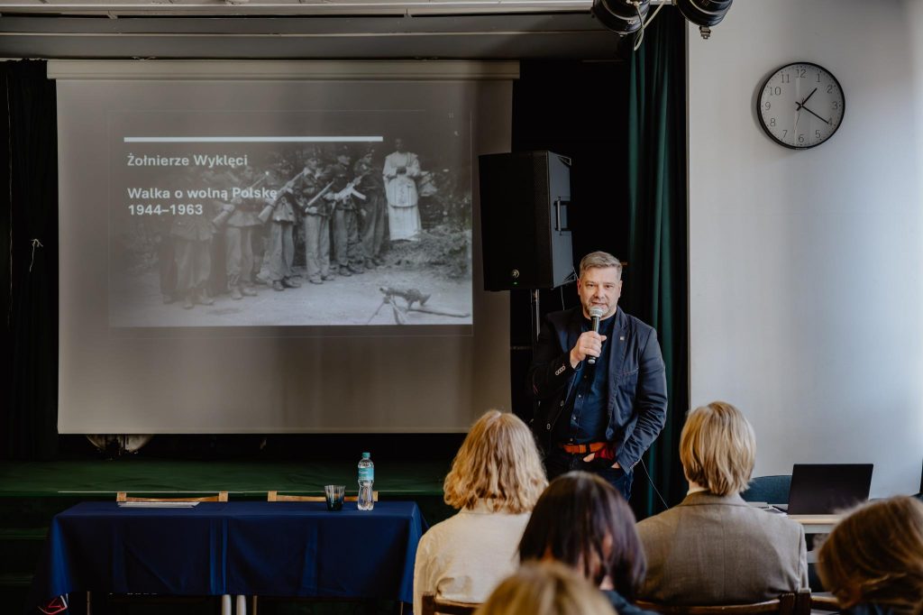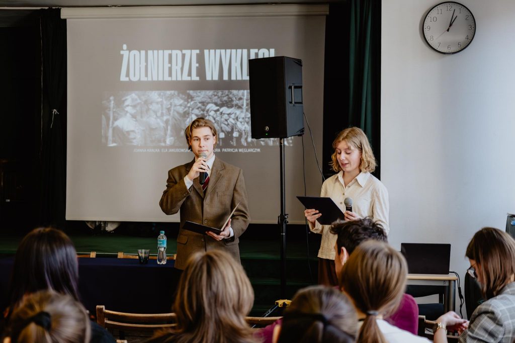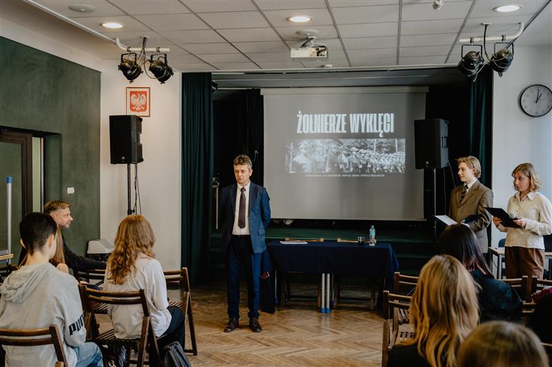27 lutego prelekcję o Żołnierzach Wyklętych wygłosił w naszej szkole dr hab. Filip Musiał – dyrektor Oddziału Instytutu Pamięci Narodowej w Krakowie, specjalista od badań nad „Polską Ludową” oraz nasz absolwent. Prelekcję Pana Profesora poprzedziła prezentacja przygotowana przez uczniów klasy 3a. Całość wydarzenia została zwieńczona krótkim panelem dyskusyjnym, podczas którego poruszyliśmy tematy świadomości historycznej, traumy społecznej oraz roli nowych mediów w kreowaniu naszej tożsamości historycznej.