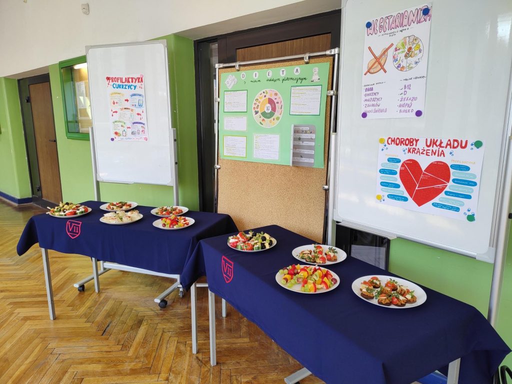 Poniedziałek upłynął pod znakiem edukacji żywieniowej – na terenie szkoły wywieszono plakaty dotyczące różnych diet, a dla uczniów dostępne były zdrowe przekąski.